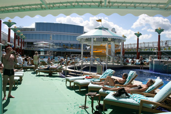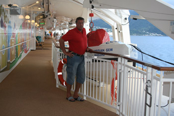 >Bevor die "Norwegian Gem" ablegt, beginnt auch schon eine karibische Band mit Musik, die ersten Cocktails werden serviert |