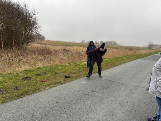 Unser alljährliches Boßeln unterm Deich am 7. März 2026. Wieder mit großer Beteiligung und anschl. Grünkohlessen!
