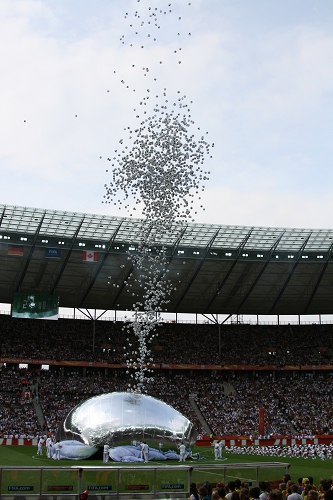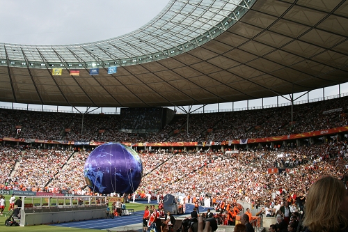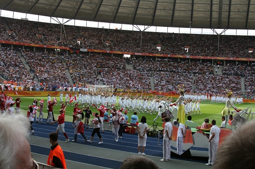 Um 18:05 Uhr beginnt das Spiel - riesige Stimmung im ausverkauften Olympia-Stadion!